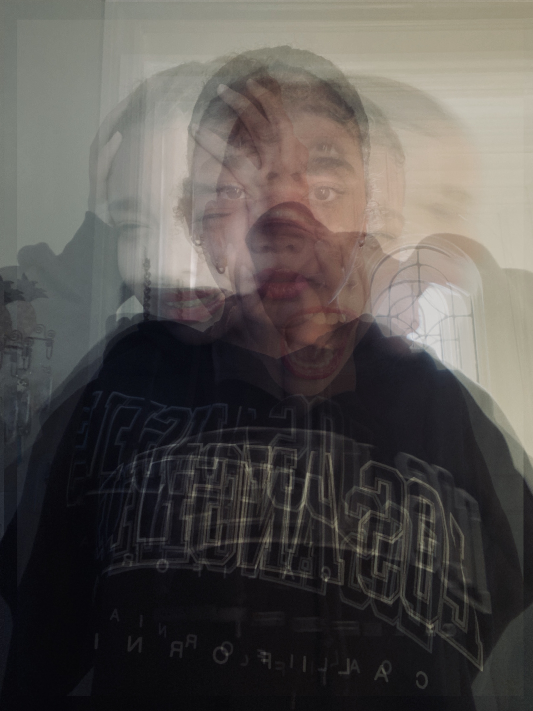 The theme of this piece is internal chaos. It is meant to illustrate what it would be like if the thoughts and feelings you bottle up were personified and could be seen by everyone. The fact that this piece is photography allows for the raw, unfiltered depiction of human pain. I was inspired by photographer Bill Wadman and his manipulation of human motion and movement in the development of this piece.